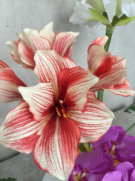 白いアマリリスのアップです。かなり品質はいい造花です。