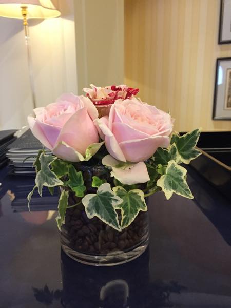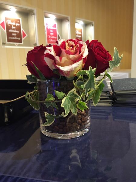 受付にもコーヒー豆が入ったグラスに赤バーションとピンクバージョンの2種類で。