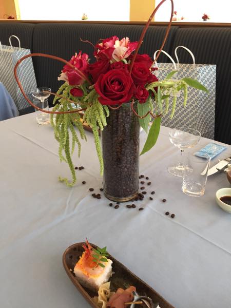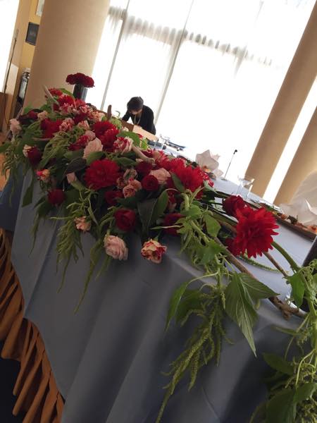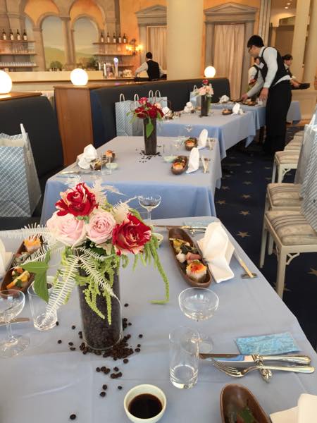 まずはメインテーブルですが、大きな窓をバックにしているのでかなりの逆光でiPhoneでの撮影はこれが限界・・・