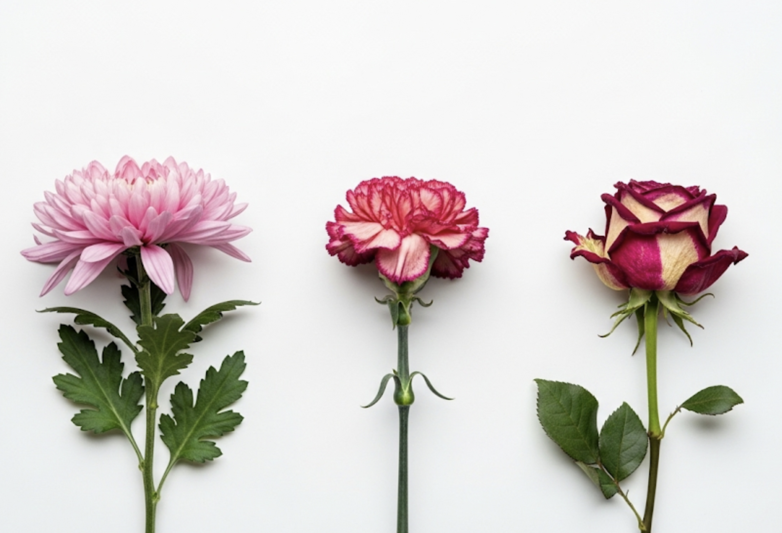例えば、キクやカーネーションのように元々丈夫で長持ちする花と、デリケートで水の吸い上げが難しい花とでは、数日、場合によっては一週間以上の差が出ることも珍しくありません。