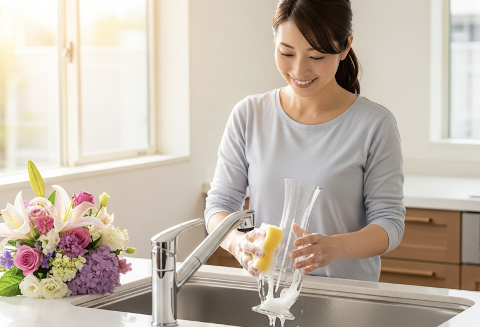 - 水替えの際は花瓶も洗剤で洗い清潔に保つ