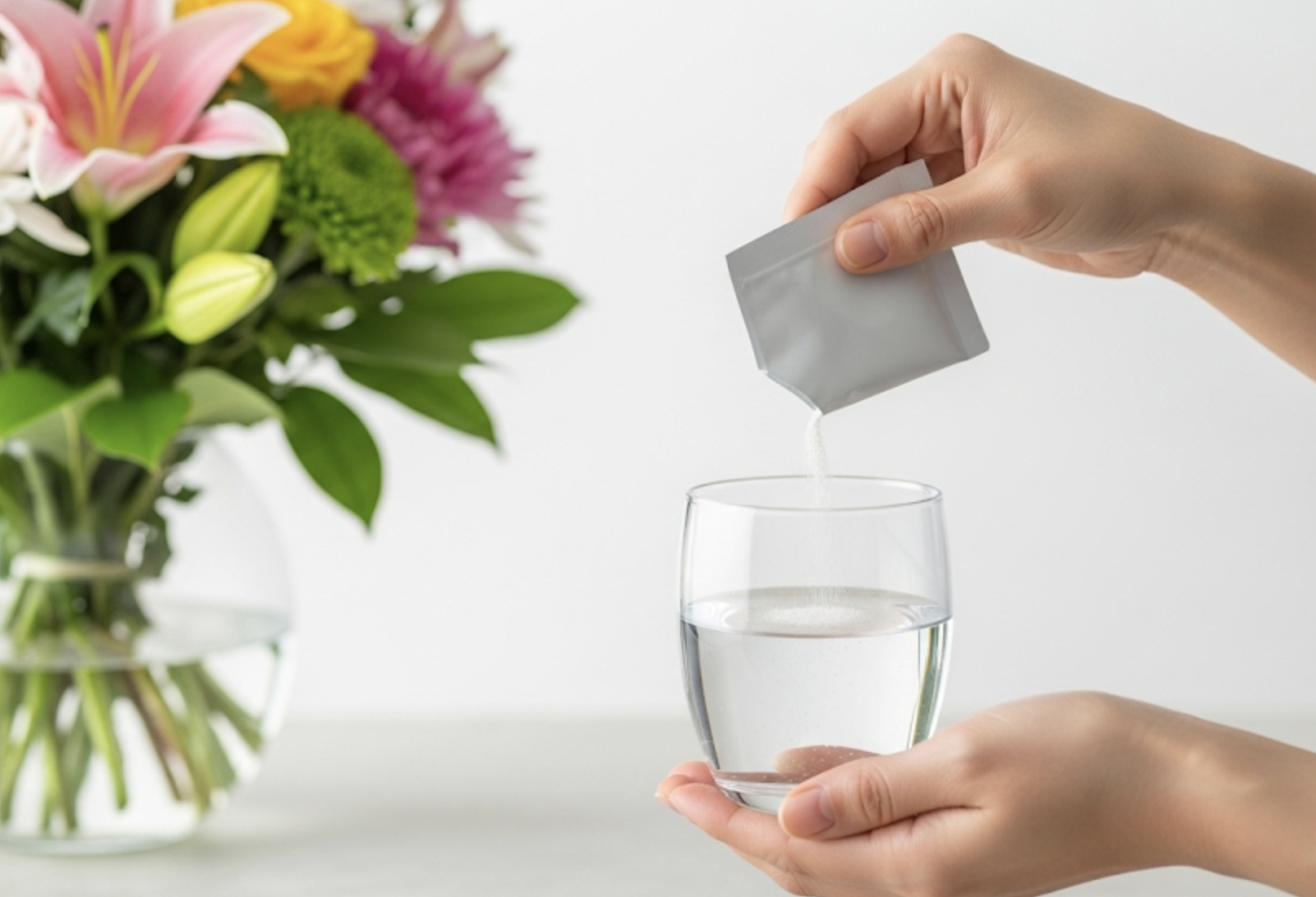 つまり、延命剤は「栄養補給」と「水の腐敗防止」を同時に行い、花にとって最適な水環境を作り出してくれる、まさに魔法の粉なのです。