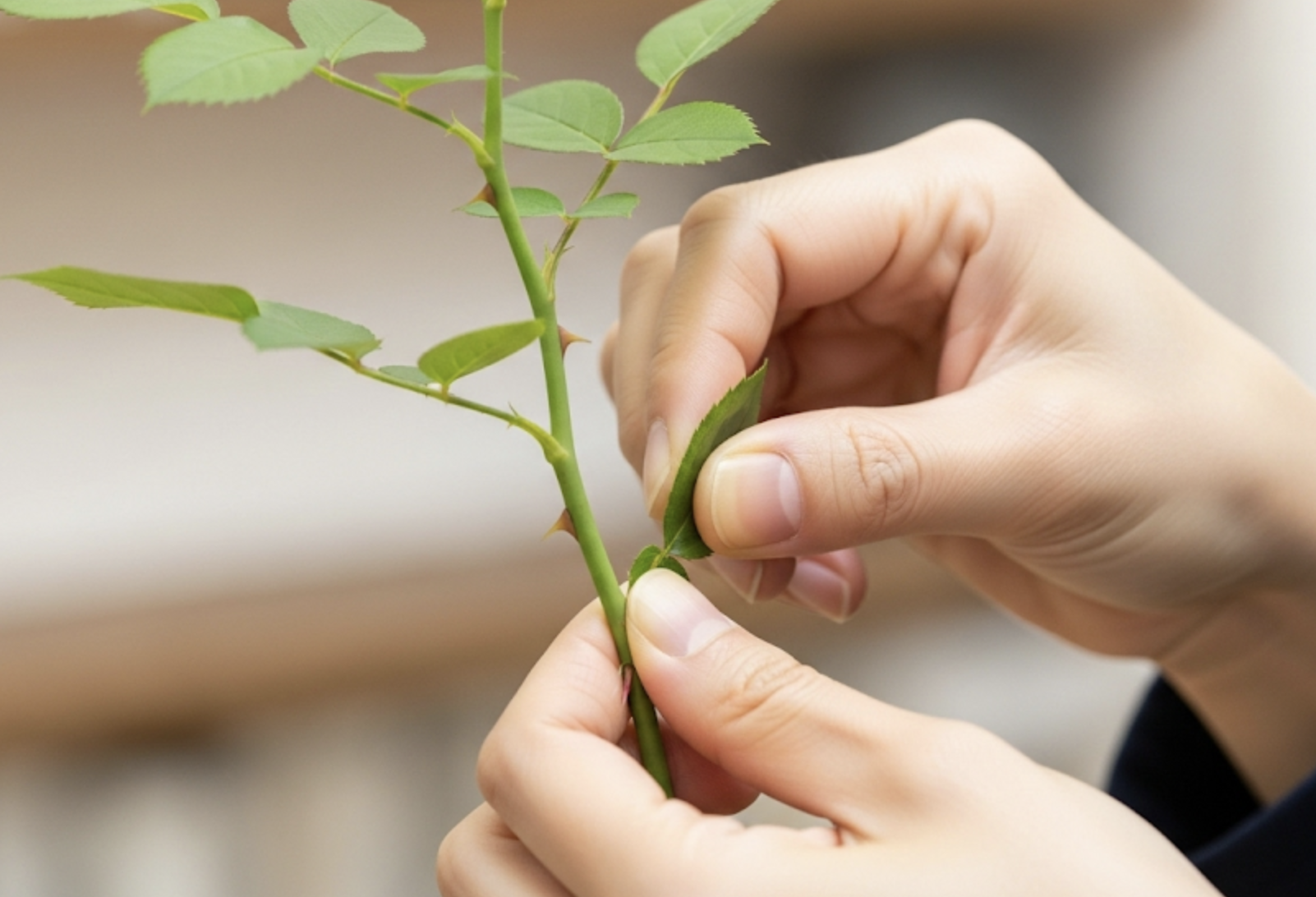 - 必須で取り除く葉: 花瓶の水に浸かる部分のすべての葉。手で簡単にむしり取れるものがほとんどです。