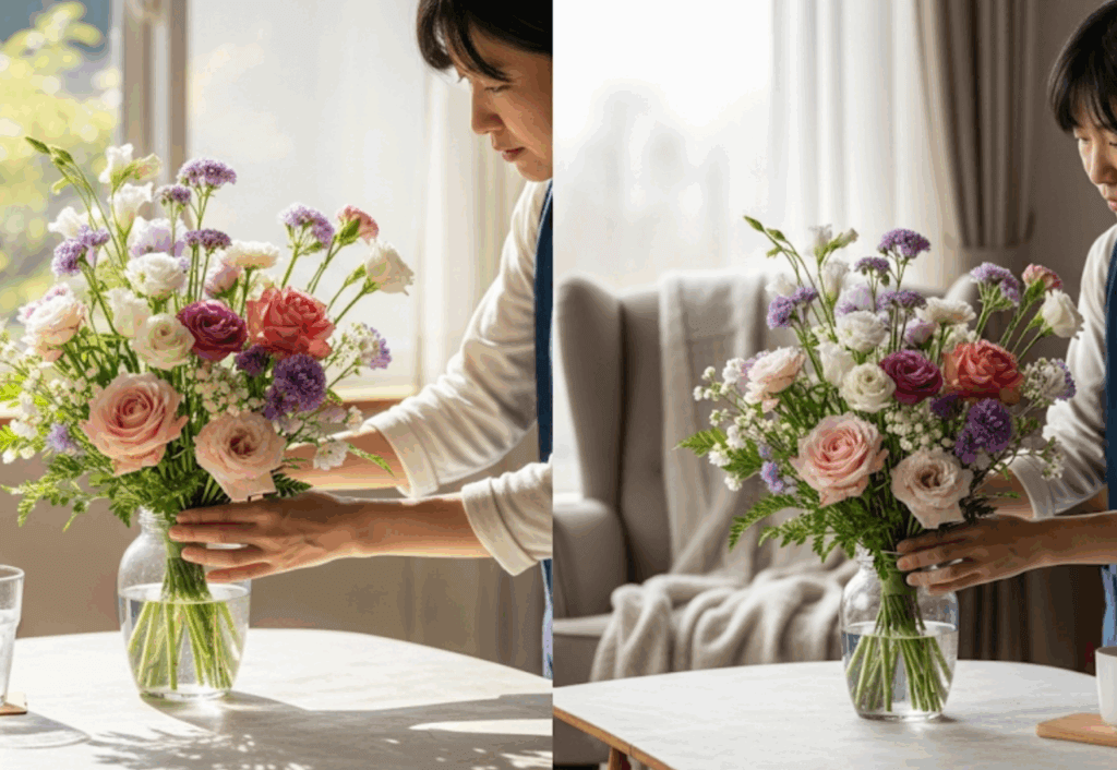 それに加えて、季節ごとのちょっとした配慮や、枯れたお花を取り除いてあげること、延命剤や霧吹きといったお助けアイテムを上手に活用することで、お花は私たちの愛情に応えるように、より一層美しく、そして長く咲き続けてくれます。