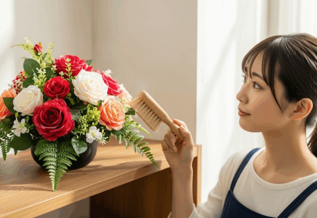 アーティフィシャルフラワーを仏花として使う場合、定期的にホコリを払うなどのお手入れを忘れないようにしましょう。