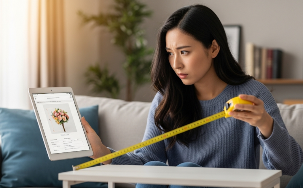 そして、その数値をメジャーなどで測り、実際に飾りたい場所に置いてみて、どのくらいの大きさになるのかをシミュレーションすることがとても大切です。