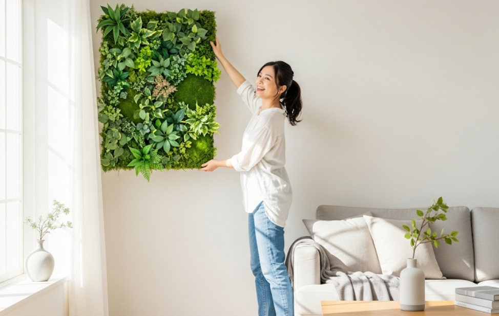 - フェイクグリーンの壁掛けは手軽に癒やしの空間を創り出す
