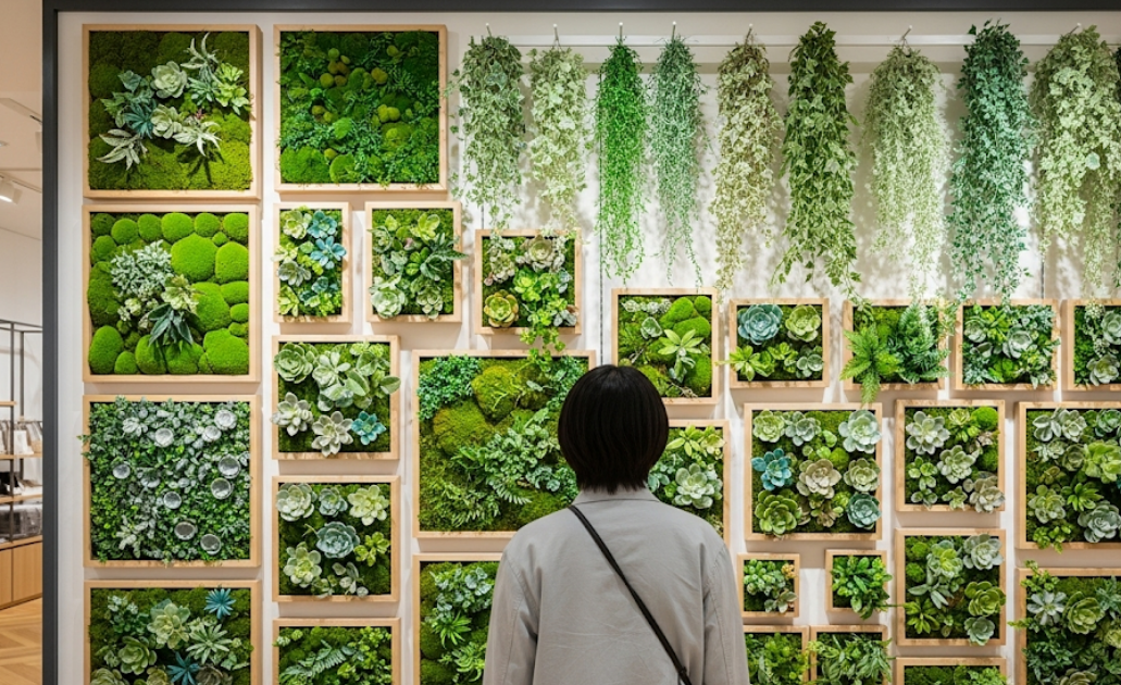 フェイクグリーンの壁掛けを、単なる「植物の代用品」としてではなく、「壁を彩るアート作品」として捉えてみませんか?