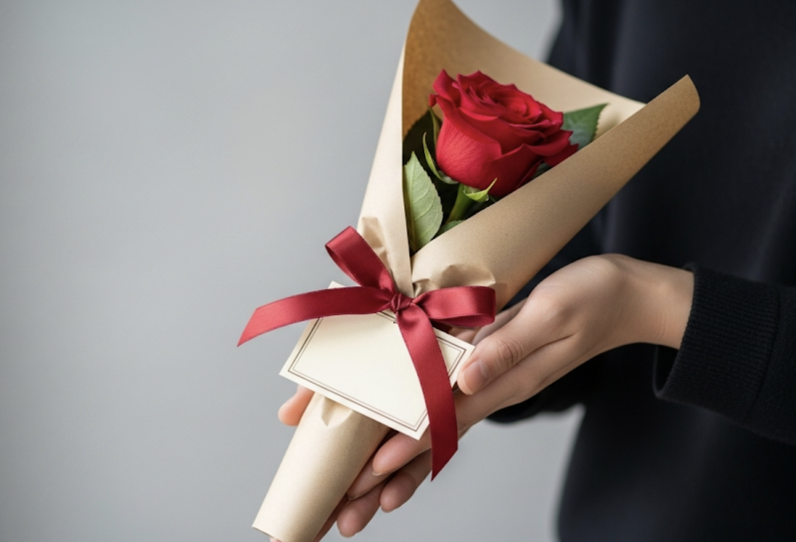 一輪のプレゼントは、非常にシンプルでスタイリッシュですが、ともすると少し素っ気ない印象を与えてしまう可能性もゼロではありません。