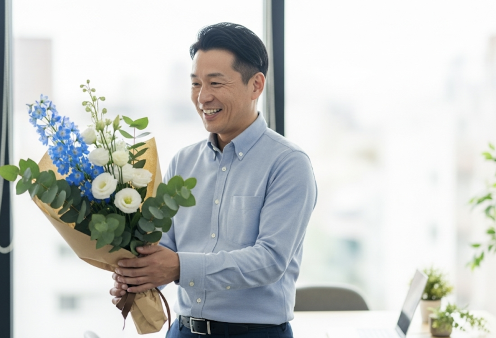 「男性に花束を贈る」というと、少し気恥ずかしかったり、どんなものを選べば良いか迷ったりする方も多いかもしれません。