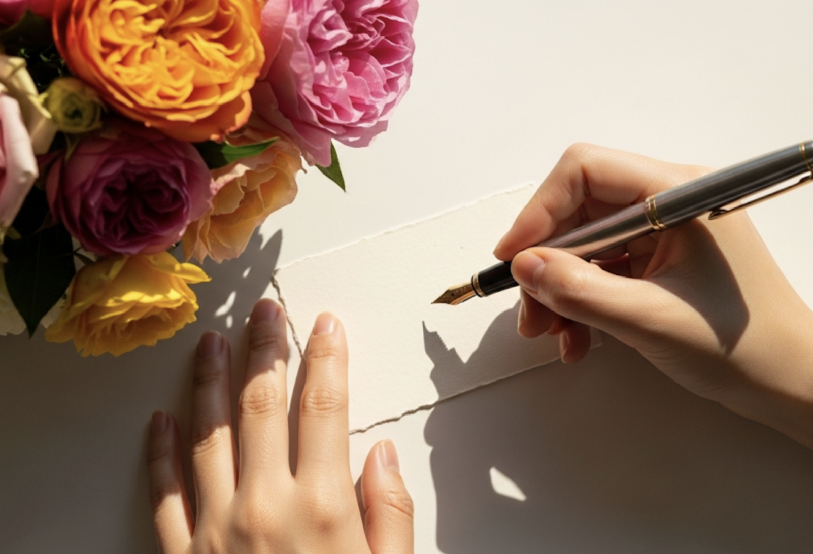花束だけでも十分に気持ちは伝わりますが、メッセージカードは、あなたの言葉で直接想いを届けるための、非常にパワフルなツールです。