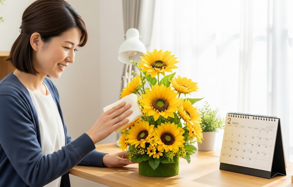 これらのちょっとしたコツを意識するだけで、あなたの飾ったひまわりの造花は、ただの「置物」から「素敵なインテリア」へと生まれ変わるはずです。