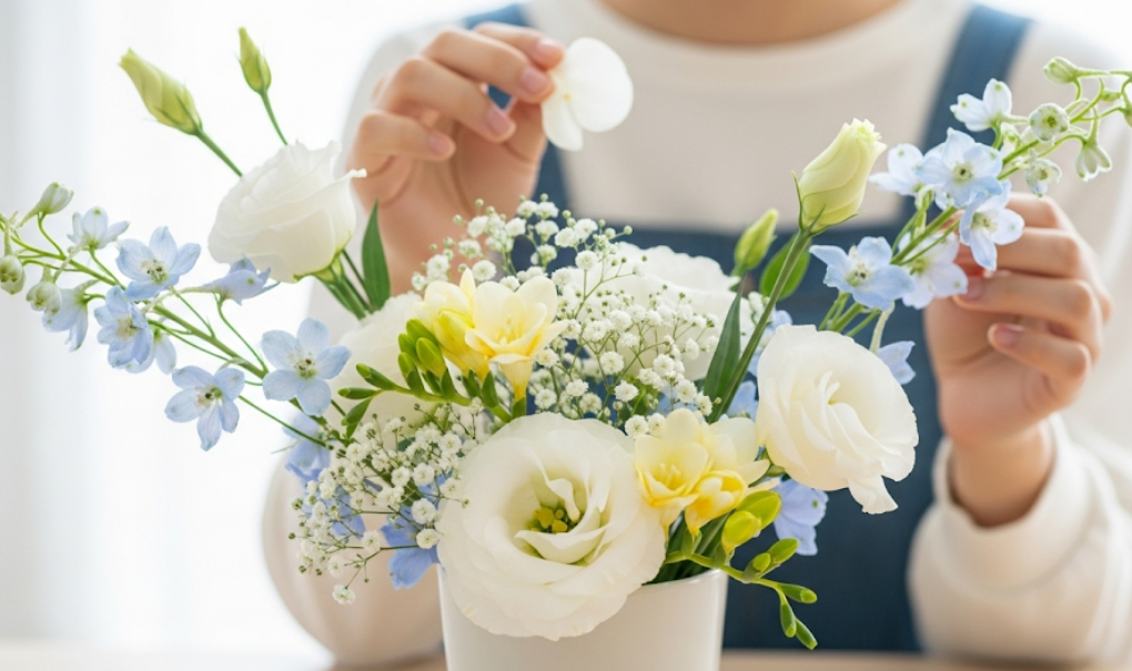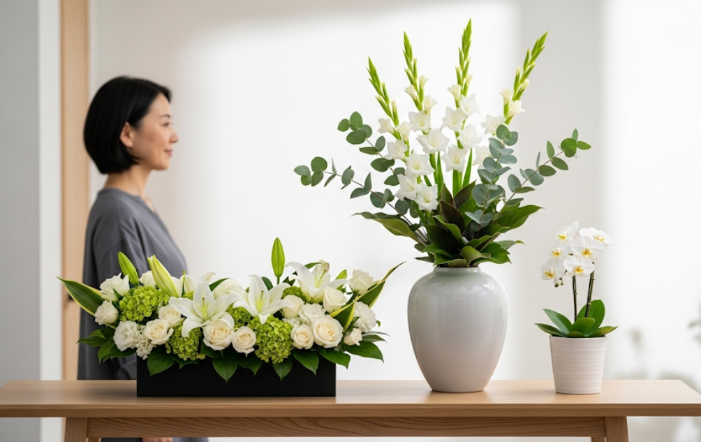 もし、お花屋さんに直接注文する場合は、「故人のイメージ」や「希望する色合い」、「飾りたい場所の雰囲気」などを伝えることで、プロのフローリストがあなただけの特別なアレンジメントを制作してくれます。