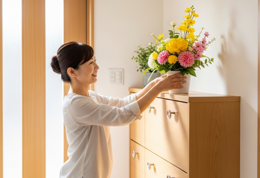 お家の顔である玄関や、清潔に保ちたいトイレ、そして安らぎの空間である寝室など、特定の場所に造花を置くことに不安を感じる方もいらっしゃるかもしれません。