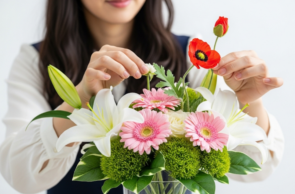 - コストパフォーマンスの向上:全てを生花で揃えるよりも、一部を造花に置き換えることで、コストを抑えながらも見栄えのするアレンジを楽しむことができます。
