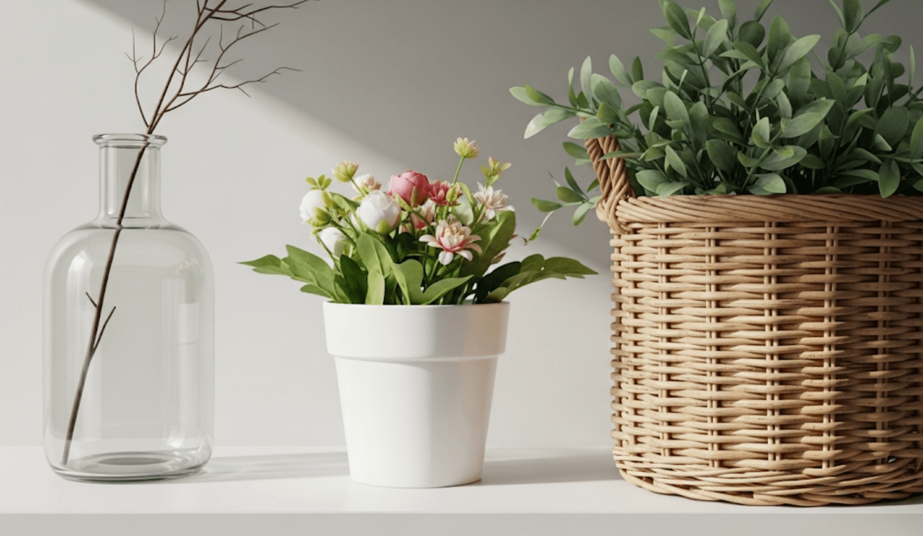 ここでは、あなたの玄関インテリアと造花を最高に輝かせるための、花瓶選びのポイントをロジカルにご紹介いたします。