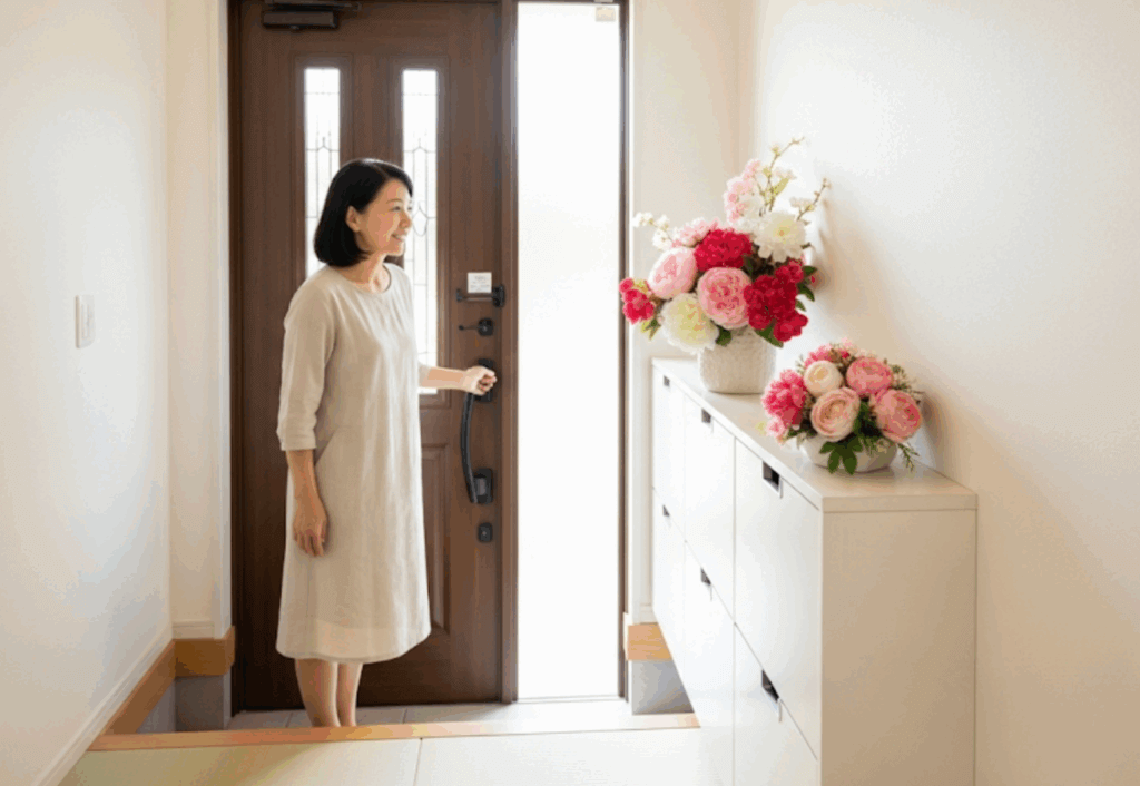 - 玄関にはウェルカムフラワーで華やかなおもてなしを
